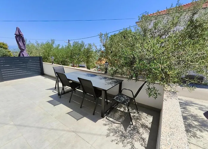 Az ingatlan olyan önellátó helyiségeket foglal magába, mint az elektromos vízforralóval és hűtővel felszerelt teljesen felszerelt konyha. A mediterrán ételeket kínáló Segetski Dvori 10 percnyi autóútra található az apartmantól. A legközelebbi repülőtér a Split, 15 km-re az apartmantól Trogirban. Van terasz, egy hely a kikapcsolódáshoz.